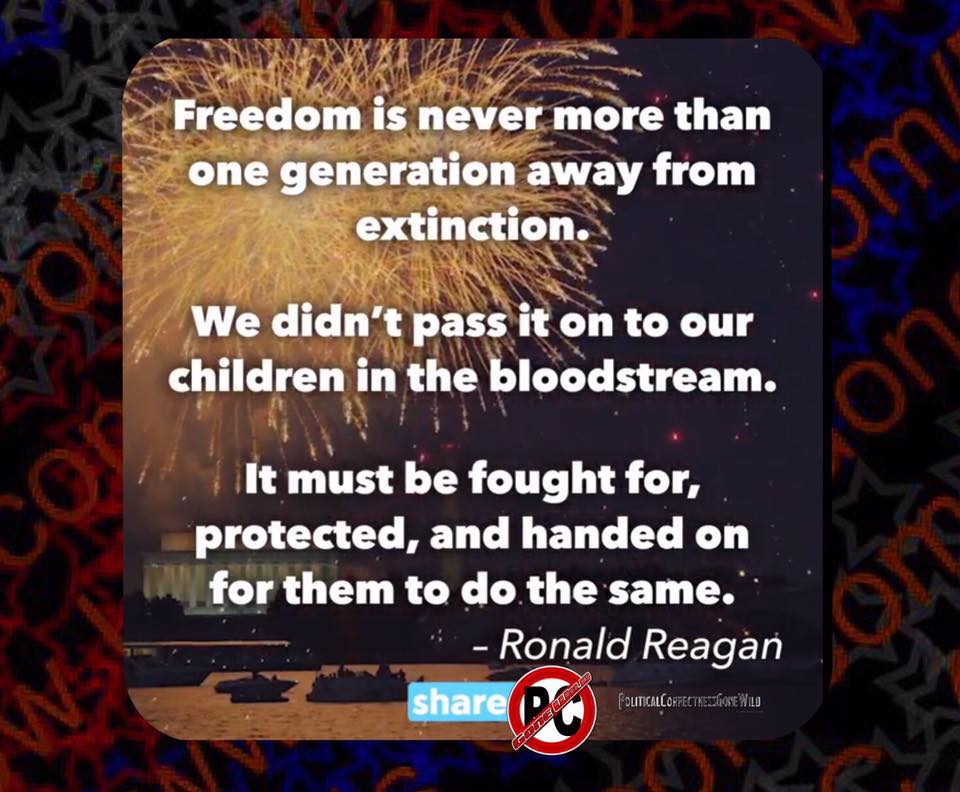 Freedom Posted on July 5, 2016 by ConservativeMe Reagan may, or may not have said this, but it doesn’t make it any less true. Share on Tumblr
